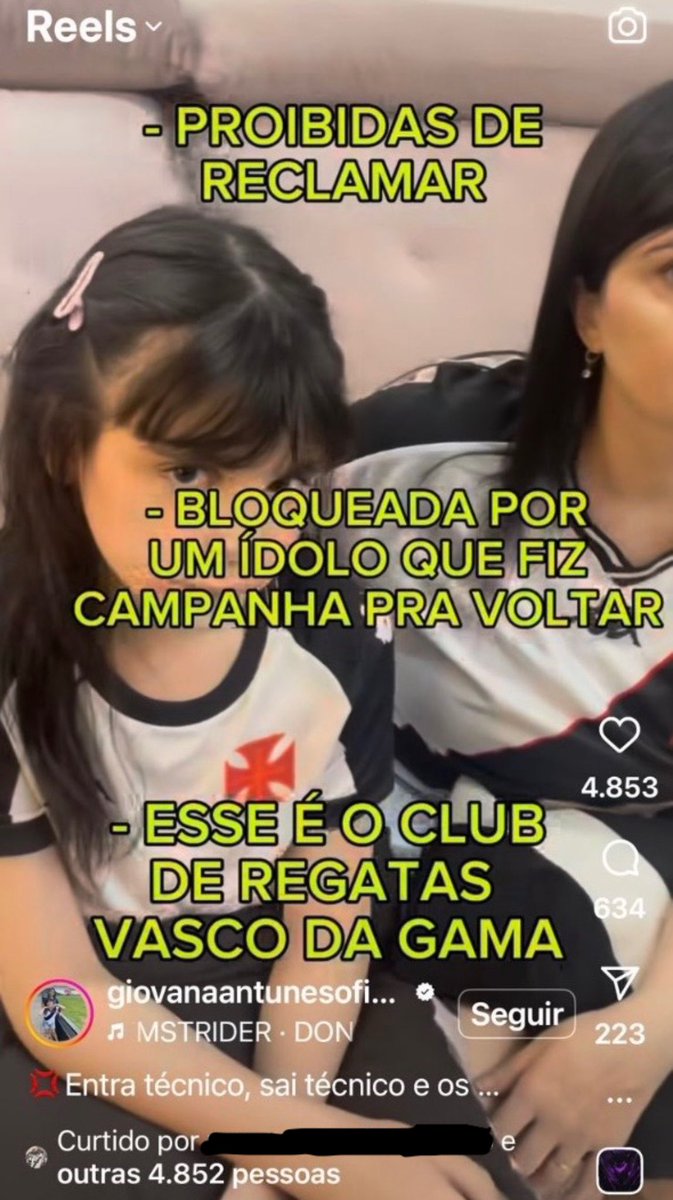 Pequena torcedora Giovana Antunes diz que Pedrinho a bloqueou no Instagram