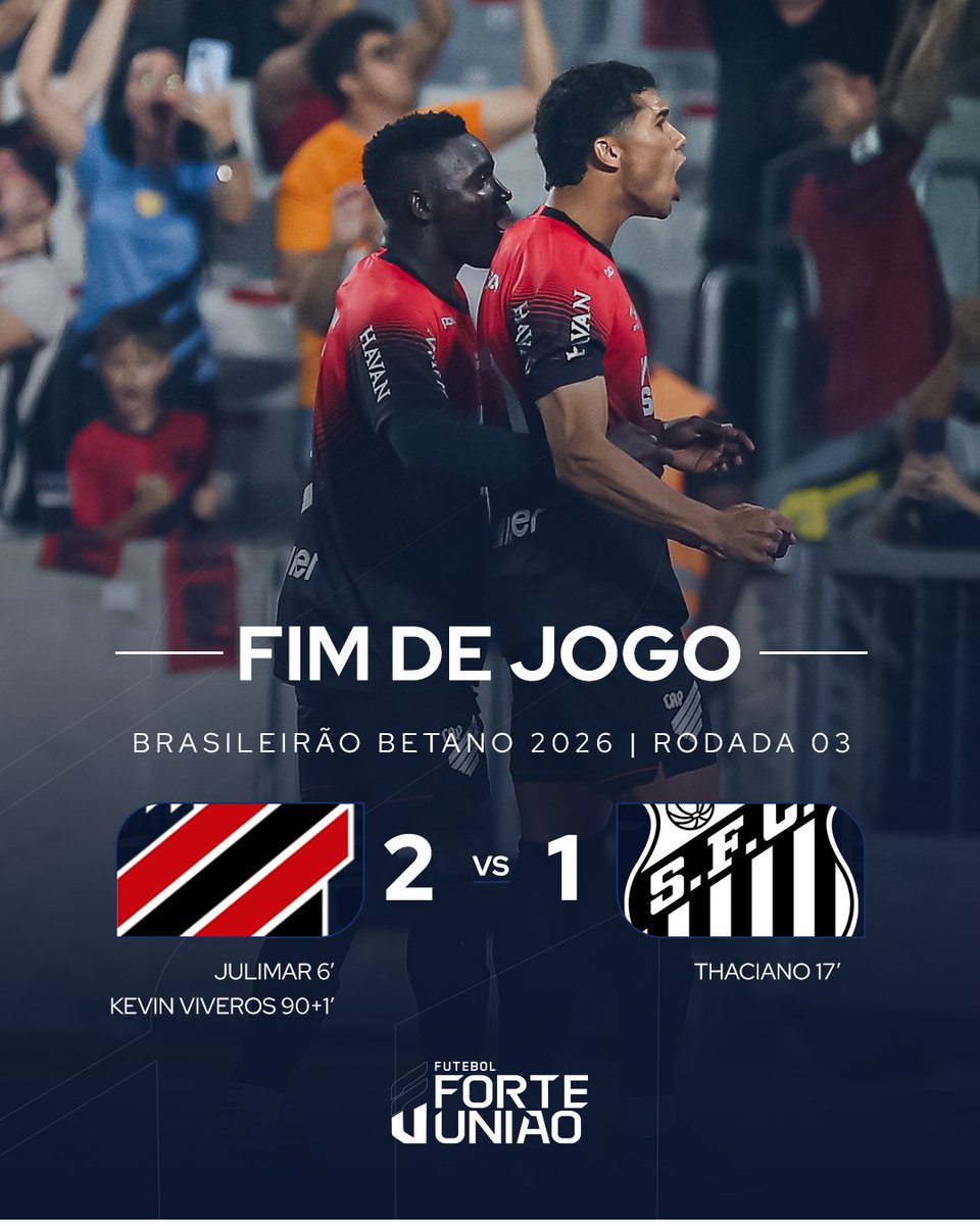 O Athletico venceu o Santos e somou mais 3 pontos no #Brasileirão!