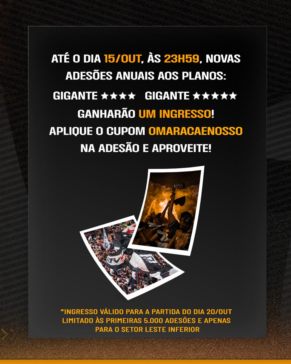 Aproveite esta condição especial para viver os benefícios do Sócio Gigante e garantir seu lugar no clássico!