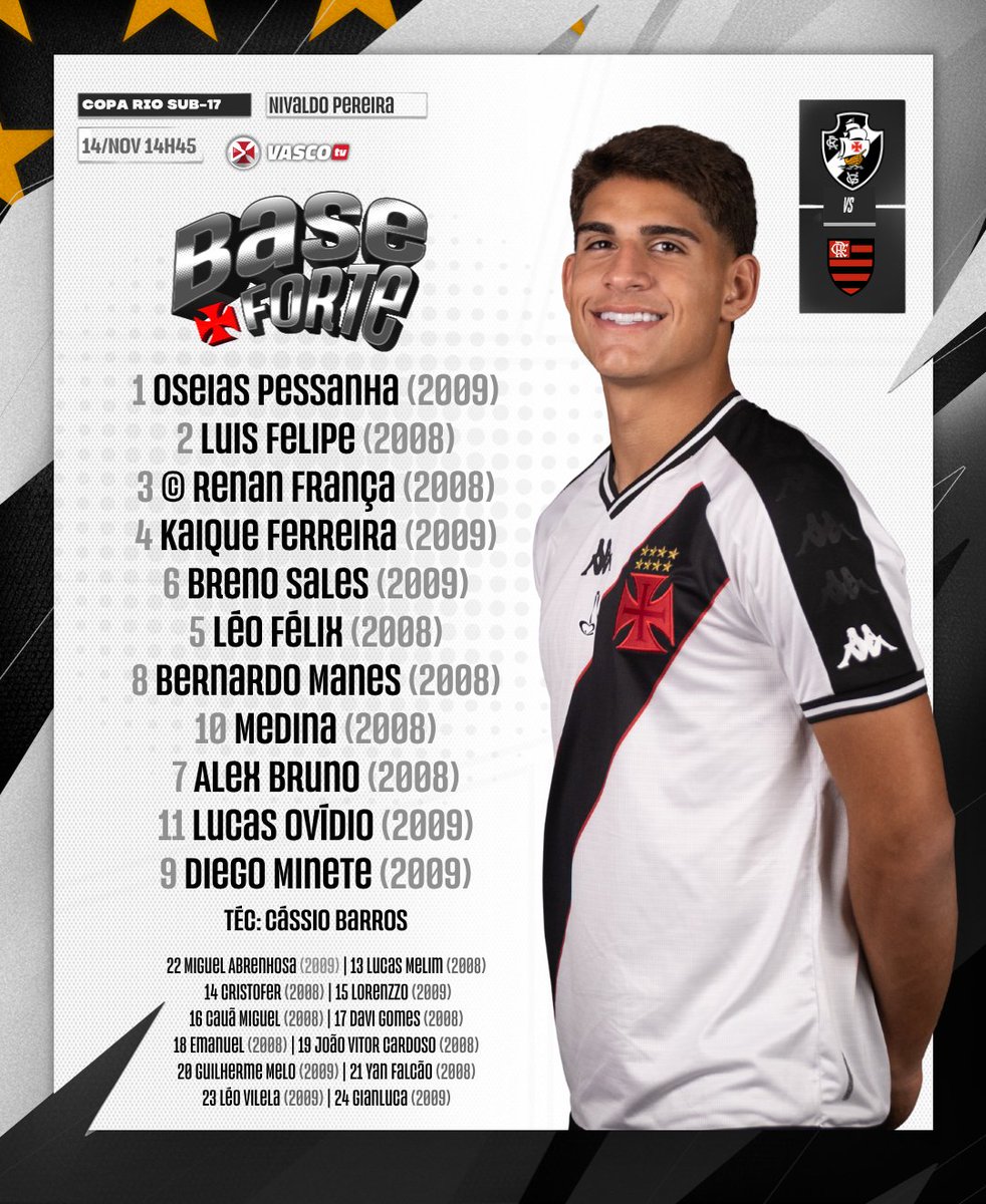 O Sub-17 está escalado para o duelo contra o Flamengo, às 14h45, pela volta da final da Copa Rio! 💢