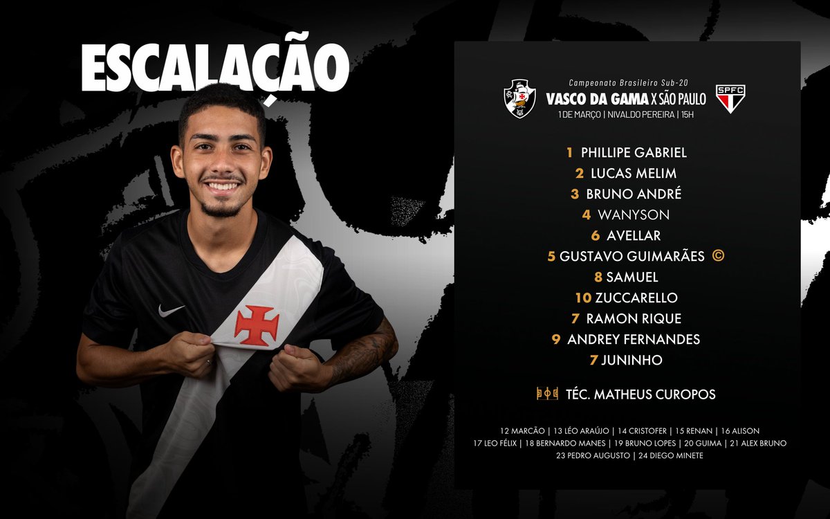 Os Crias da Colina estão escalados para enfrentar o São Paulo pela 3ª rodada do Brasileiro Sub-20 📋💢