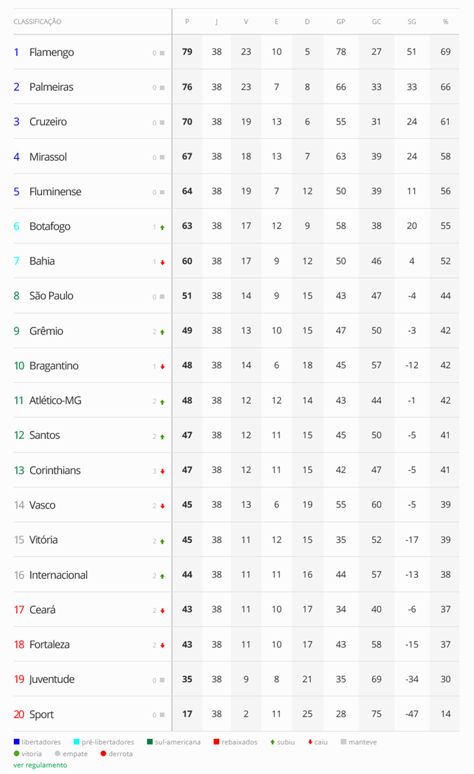 Veja a classificação final do Campeonato Brasileiro 2025: