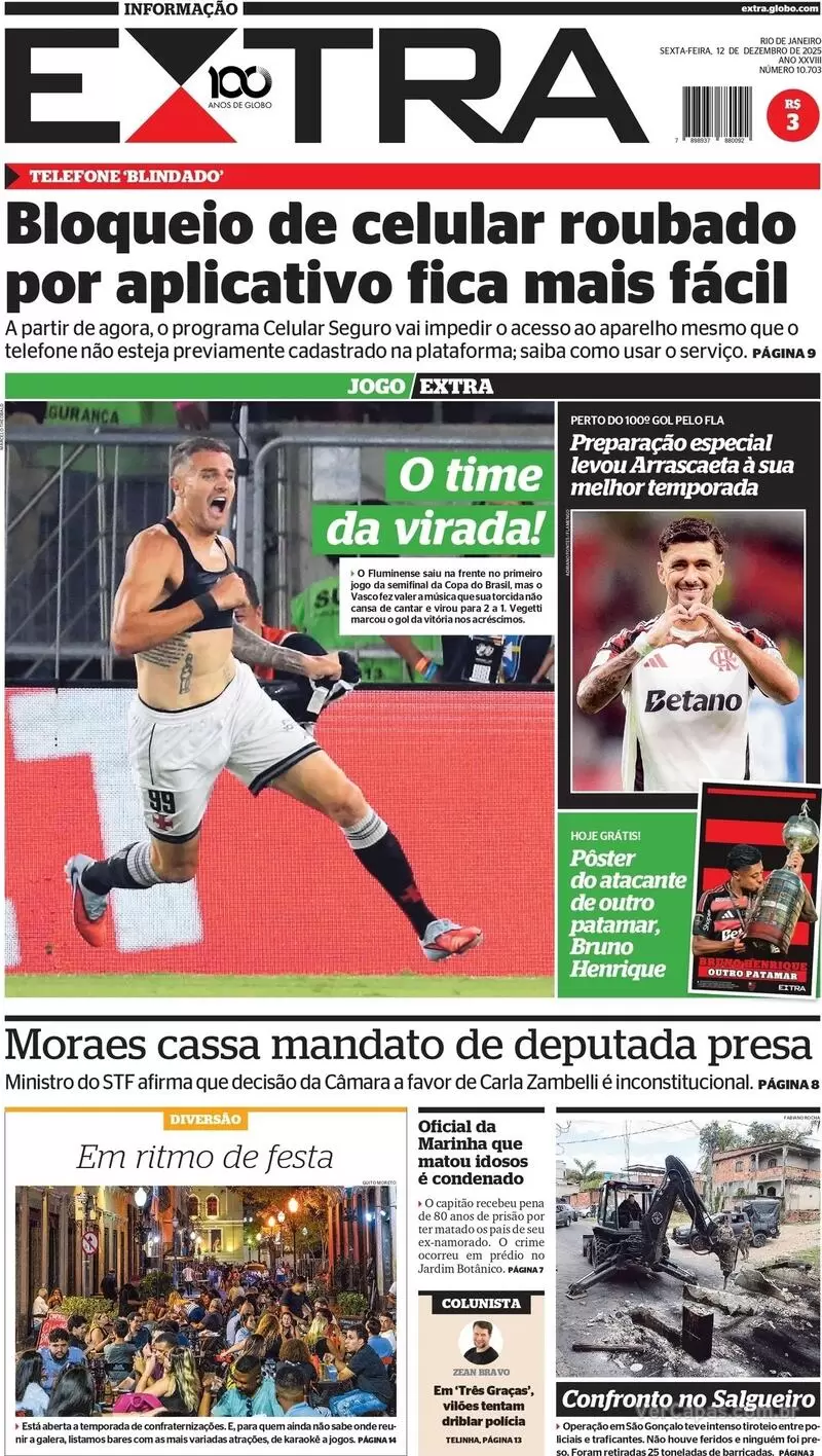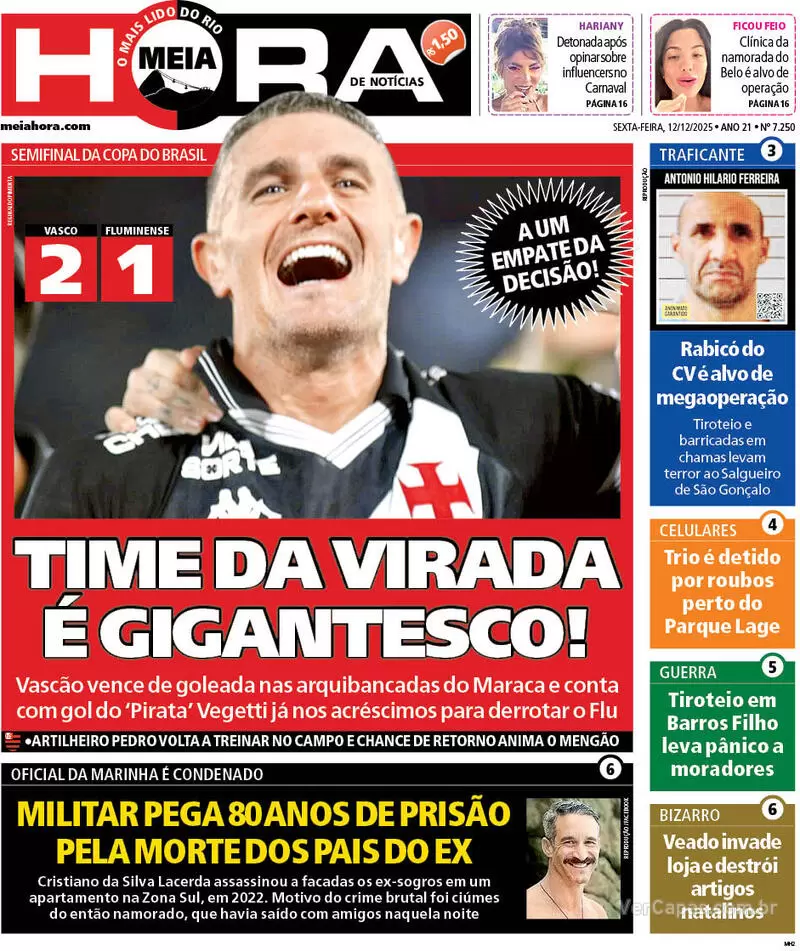 Pelo jogo de ida da semifinal da Copa do Brasil, o Vasco venceu o Fluminense de virada por 2 a 1 no Maracanã. Veja as capas dos jornais.